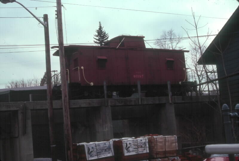 Photo #9: The caboose sits on the coaling trestle at the Sickley Brothers Company of South Orange, NJ. This is a disconnected section of track, so the trick is getting it off the trestle.