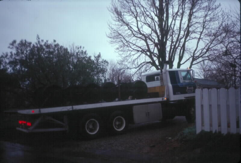 Photo #13: The trucks arrive at Pete's house in Bloomsbury on a rollback truck.
