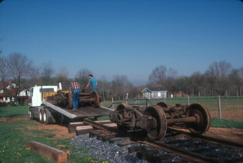 Photo #19: The trucks are rolled off the rollback and onto the rails.