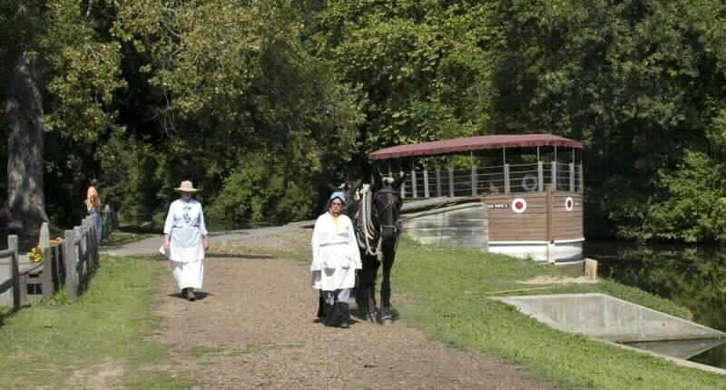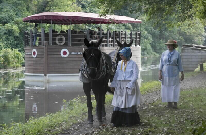 Meg Carpenito planned something special for us this year, a ride on a canal boat. After everyone finished eating and had some time to chat we all went over to the boat landing and boarded the Josiah White II canal boat. I opted to hoof it with the mules to get some pictures and video.