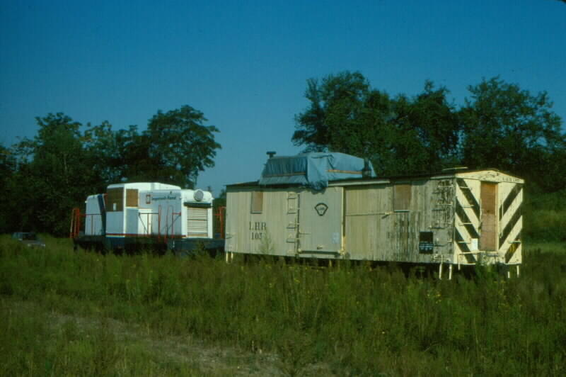 Photo 9: The flanger and our 44 ton locomotive in storage in the Merritt Brick Yard.
