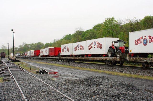 Ringling Brothers and Barnum & Bailey Red Unit passes Eastbound through Phillipsburg, NJ on a rainy Monday April 28, 2008.