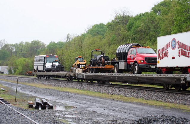 Ringling Brothers and Barnum & Bailey Red Unit passes Eastbound through Phillipsburg, NJ on a rainy Monday April 28, 2008.