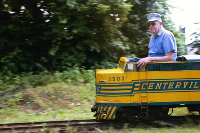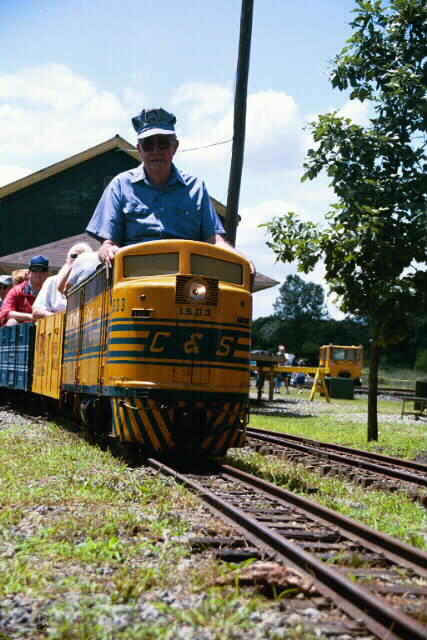 ![]() Glenn Terminelli takes the controls of the Centerville & Southwestern. |