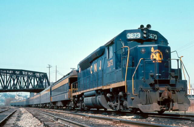 Photo #21: CNJ GP40 3673 waits at the Phillipsburg station to head east with its passenger train.