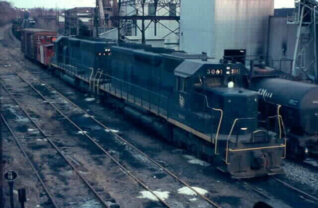 Photo #056: SD40 #3061 working the CNJ yard behind Warren Foundry. The photographer is on the Stockton Street overpass.