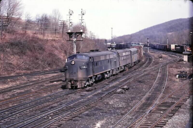 Photo #010: Leased F7 #14 leads a westbound train out of Allentown yard.