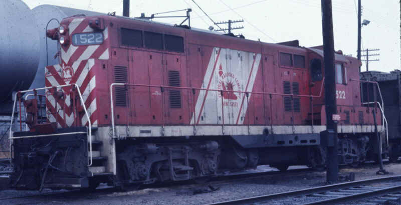 Photo #041: The question still exists: Which way did the stripes slant on red "Coast Guard" paint scheme. I have been told that the stripes slant toward the cab of the locomotive. This is true on GP7 #1522 in the phase 1 stripe.