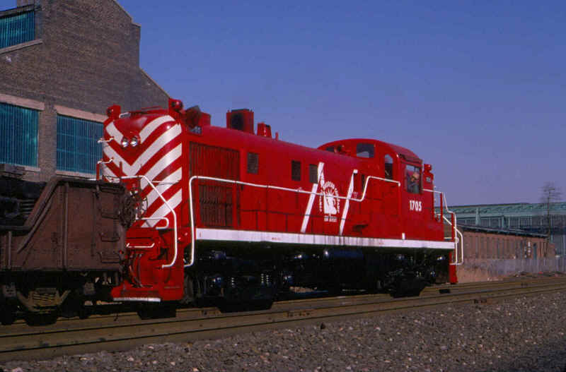 Photo #043: Fresh from the paint shop is RS3 #1705. The stripes on the phase 2 paint scheme slant toward the cab.