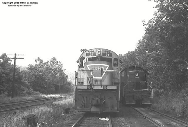 | Photo #008: Photo shows a Lehigh & Hudson River Alco C420 #21 and a PRR RS3(?) locomotive to its right. | ||