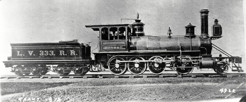 Photo #23: The 333 is one of ten Grant Locomotives on the Lehigh Valley. One report was that they had been built for Russia but never shipped and sold to the Lehigh Valley. The 333 was rebuilt at the LVRR Wilkes-Barre Shop in November 1889 as a camelback and then renumbered 537 in 1905.