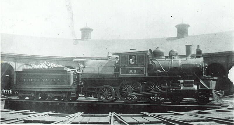 Photo #27: This photo is of the Lehigh Valley 666 at the South Easton engine house in August 1900. This engine was renumbered 2322 in 1905.