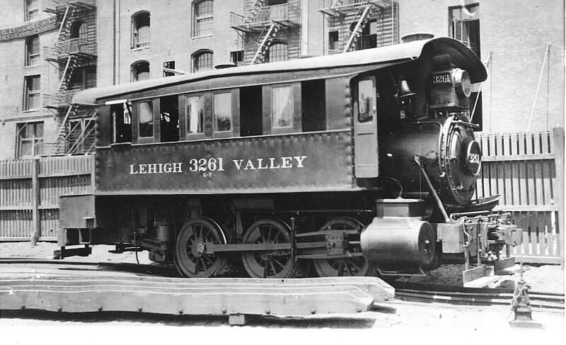 Photo #88: The 3261 is what was called a dummy locomotive; made to look like something it is not. In big cities like New York, steam locomotives would scare horses so the railroads made the dummy locomotives. It was made into a dummy at the Lehigh Valley’s South Easton shop but the man from the Buffalo shop came up with the plans in 1900. This photo was taken in 1916.