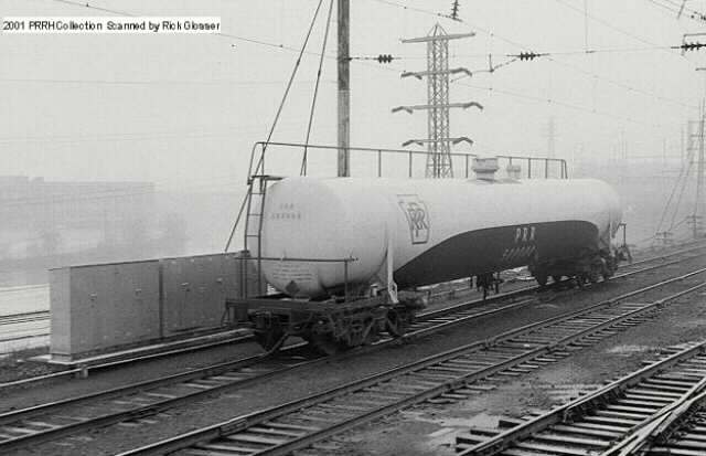 PRR Tank Car # 50000 was one of two built (the other, #50001) for PRR in 1965 and in the PRR paint scheme. Built as a six-axle (something new at that time), the tank car became know as the "Rail Whale" with a capacity of 38,000 gallons.