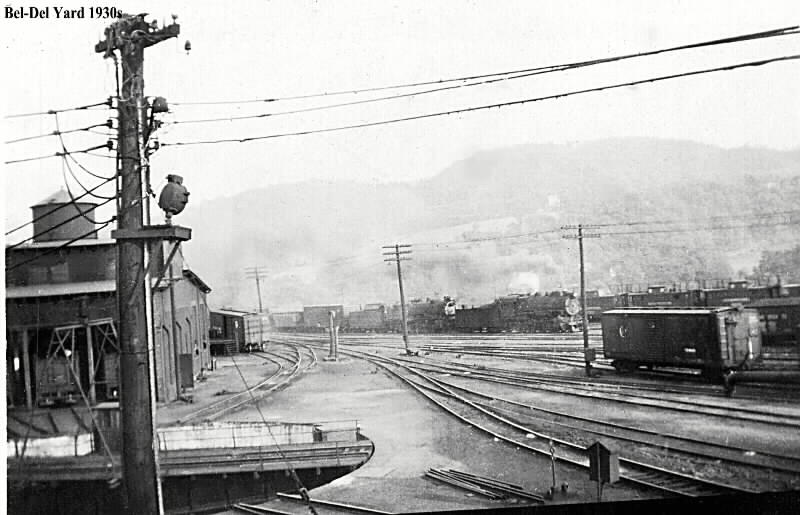 Photo #016: Looking south. Box car at right is on bad order track #12. The narrow gauge maintenance track in front of the box car terminates at the pole in the middle of the picture. Phone call box is on the east side of track #16. A box car is spotted at the oil platform just to the right of the roundhouse. The roundhouse was demolished in 1959 due to its general deterioration and collapsing roof.