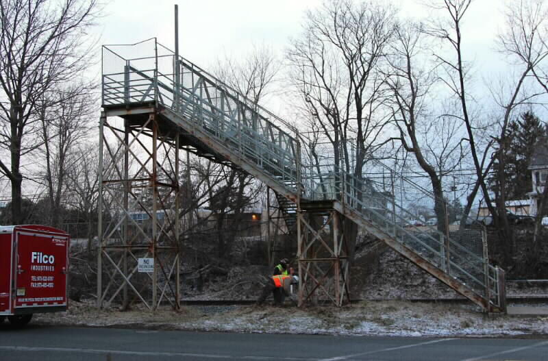Photo #01: Removal of the pedestrian bridge over the NS Lehigh Line in Alpha, NJ.