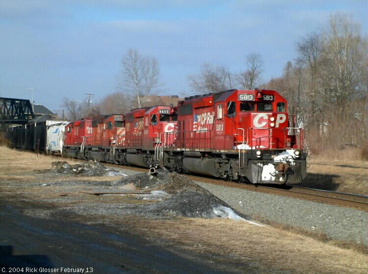 Train had four CP SD40-2s #5813, 5655, 5390 and 5549.