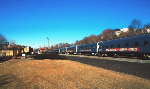 Ringling Brothers Blue Unit Circus train, NS 048-H4-29, eastbound past PRRH site on Feburary 29, 2000, 08:50.