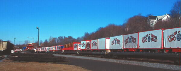 Ringling Brothers Blue Unit Circus train, NS 048-H4-29, eastbound past PRRH site on Feburary 29, 2000, 08:50.