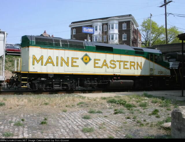 Washington local H65 with dead in tow Morristown & Erie F40PH #291 in Maine Eastern paint scheme at 1107 hours.