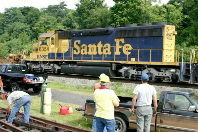 BNSF 6354 in bluebonnet paint rolls eastbound during the PRRH work party Saturday.