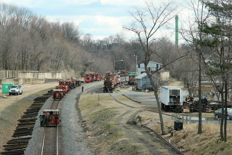 Photo 1: Section gang got an early start replacing ties on the Lehigh line this year.