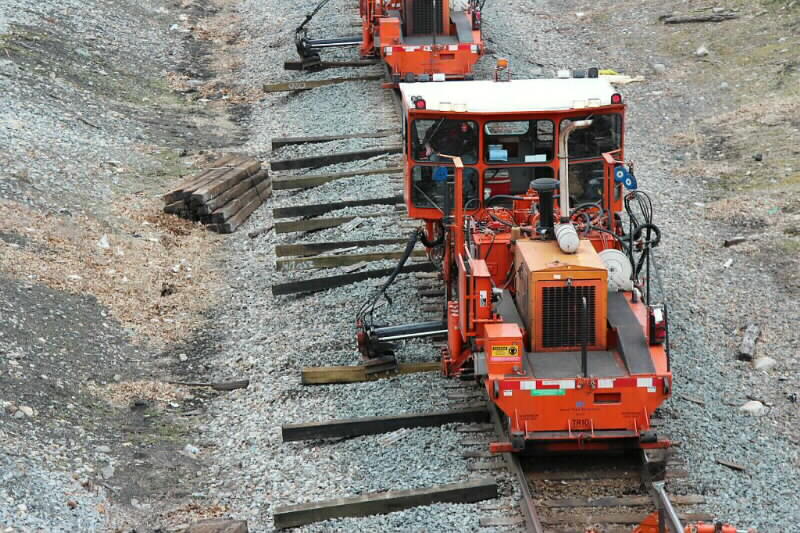 Photo 12: Next two machines are sliding the new ties under the track replacing the old ones. - Rick Glosser -