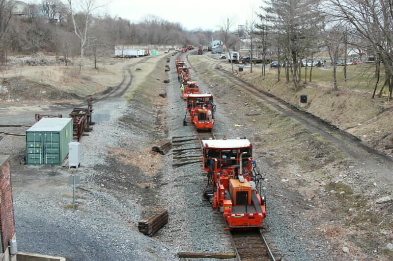 Photo 13: Next two machines are sliding the new ties under the track replacing the old ones. - Rick Glosser -