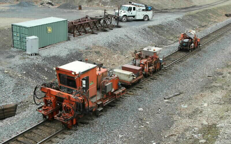 Photo 24: OK..last images of the LEHL tie work will show the regulator, tamper machines and redoing the ballast. The final sweeping of the track will come after gang returns and change the switch ties at CP PHILLIPSBURG. There is a front end loader that was dropped off earlier that I would assume will be used at the interlocking. The new long switch ties are still at the location. - Rick Glosser -