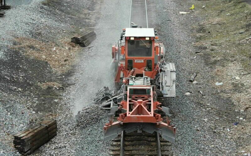 Photo 25: OK..last images of the LEHL tie work will show the regulator, tamper machines and redoing the ballast. The final sweeping of the track will come after gang returns and change the switch ties at CP PHILLIPSBURG. There is a front end loader that was dropped off earlier that I would assume will be used at the interlocking. The new long switch ties are still at the location. - Rick Glosser -