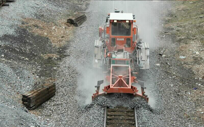 Photo 28: OK..last images of the LEHL tie work will show the regulator, tamper machines and redoing the ballast. The final sweeping of the track will come after gang returns and change the switch ties at CP PHILLIPSBURG. There is a front end loader that was dropped off earlier that I would assume will be used at the interlocking. The new long switch ties are still at the location. - Rick Glosser -
